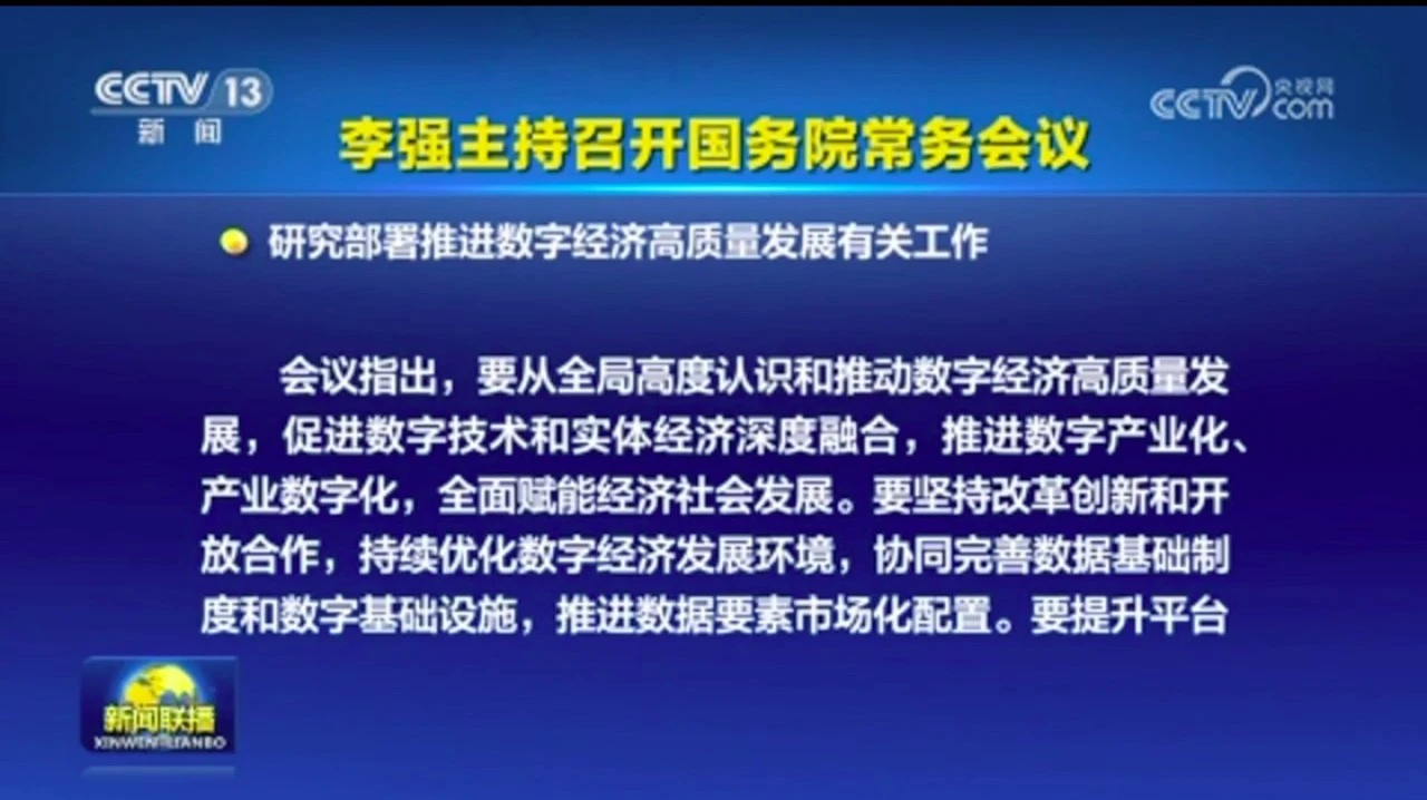 会议指出,要从全局高度认识和推动数字经济高质量发展,促进数字技术和实体经济深度融合,推进数字产业化、产业数字化,全面赋能经济社会发展。要坚持改革创新和开放合作,持续优化数字经济发展环境,协同完善数据基础制度和数字基础设施,推进数据要素市场化配置。要提升平台企业创新能力,促进平台经济持续健康发展。